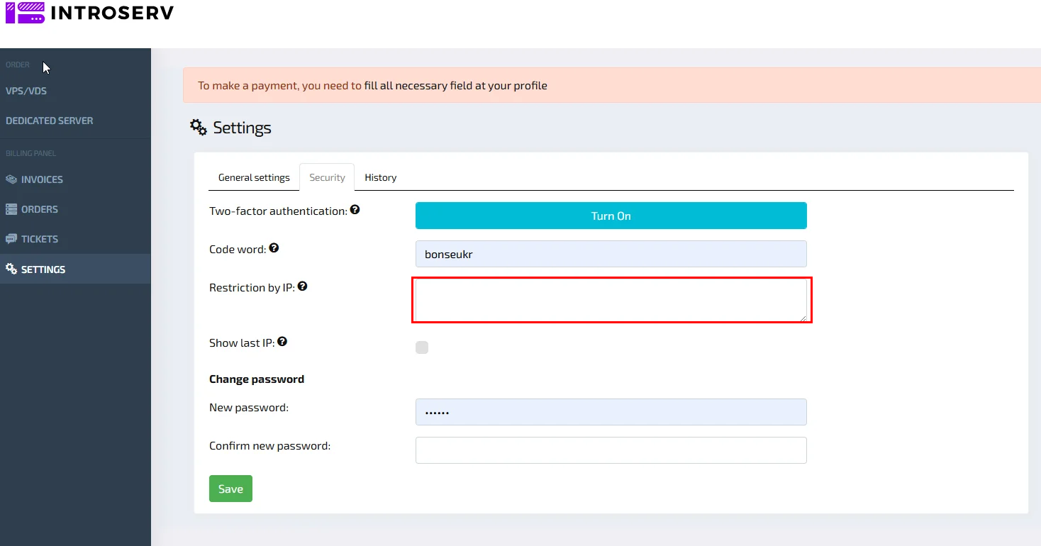 La liste d'autorisation IP (également connue sous le nom de liste blanche IP) est une fonction de sécurité qui limite l'accès à votre compte INTROSERV à des adresses IP spécifiques. Lorsqu'elle est activée, vous ne pouvez vous connecter à votre compte qu'à partir des adresses IP que vous avez explicitement autorisées, ce qui ajoute une couche supplémentaire de protection contre les accès non autorisés.