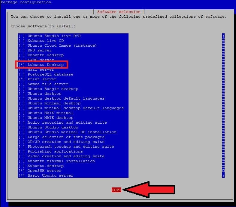L'interface va démarrer, où à l'aide des flèches, faites défiler vers le bas et trouvez le bureau Lubuntu.