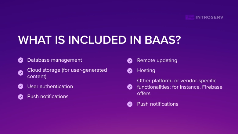 Backend-as-a-Service (BaaS) je model u kojem programeri prepuštaju sve skrivene aspekte svojih aplikacija, fokusirajući se na korisničko sučelje. BaaS pružatelji nude gotov softver za server-side operacije poput autentifikacije, upravljanja bazama podataka i push obavijesti.