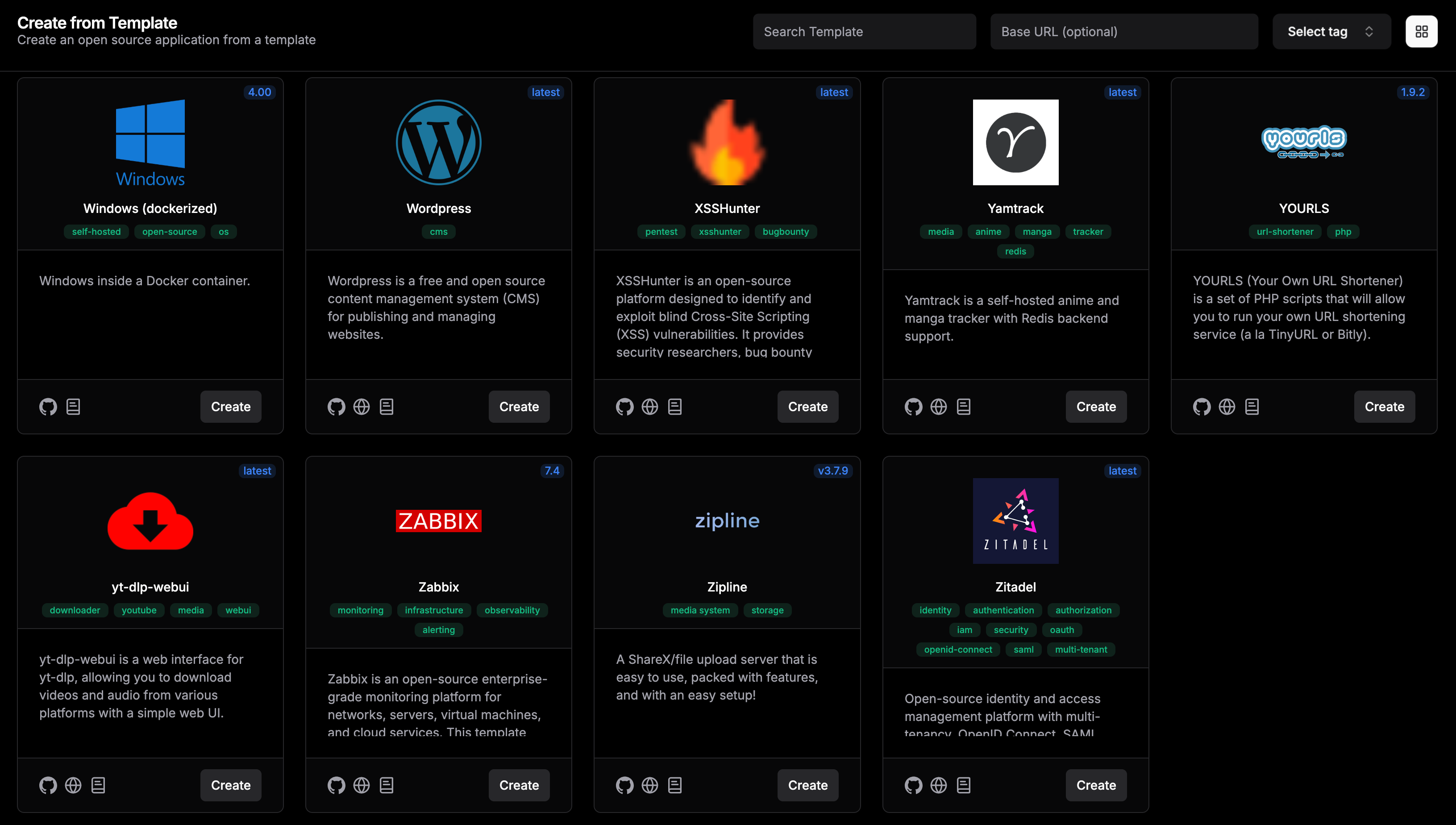 Dokploy trenutno nudi impresivnu biblioteku s preko 350 predložaka. Unatoč vanjskoj jednostavnosti, platforma postaje zaista moćan alat, omogućavajući vam implementaciju praktički bilo kojeg popularnog alata otvorenog koda u sekundama. Ovo je idealan izbor za one koji žele maksimalno gotovih rješenja bez opterećivanja servera teškim sistemskim zahtjevima.