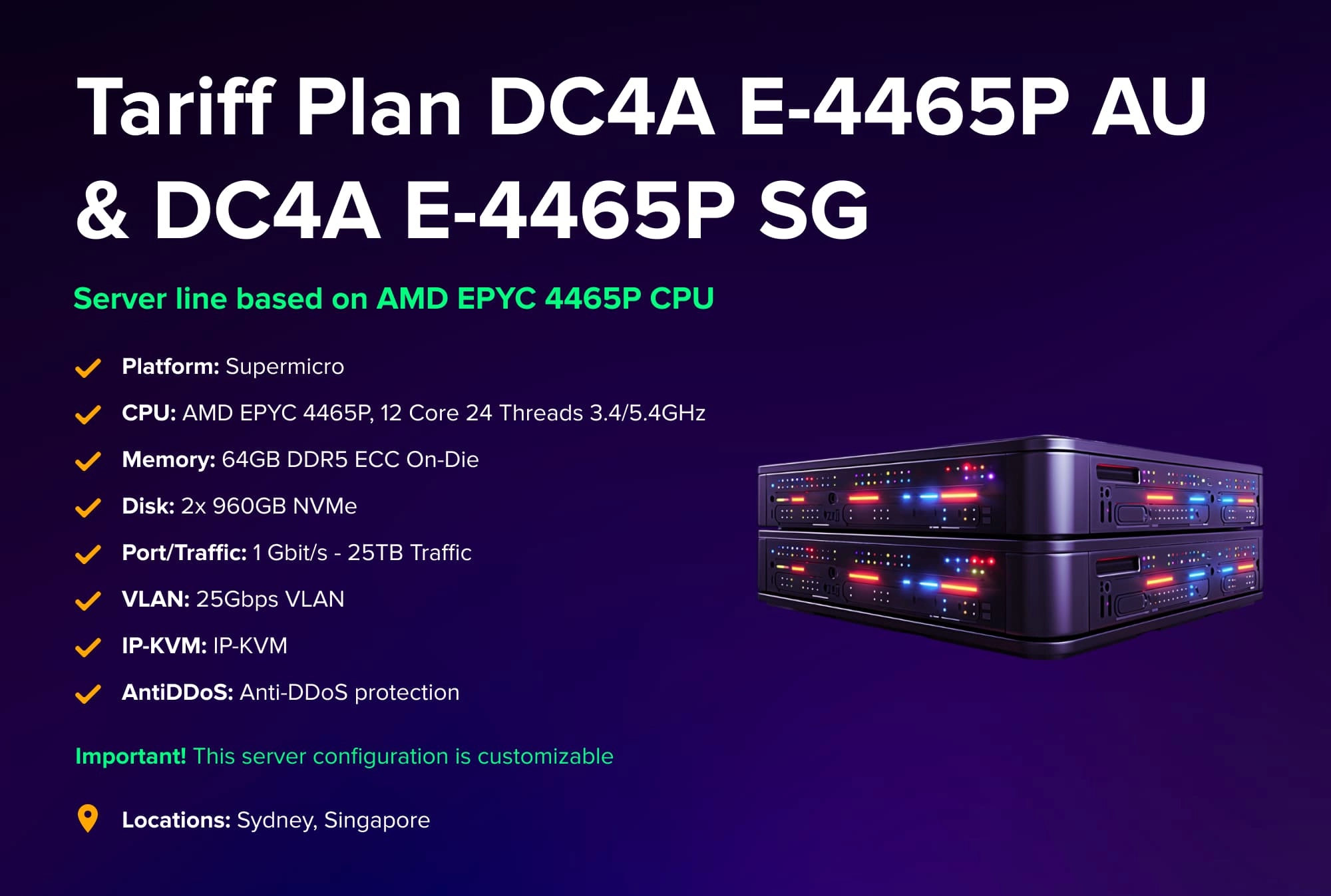 DC4A E-4245P SG i DC4A E-4245P AU – Dedikovani serveri visokih performansi smješteni u Singapuru i Australiji.