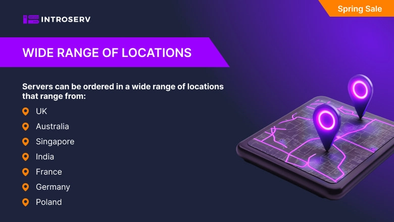 Serveri mogu biti naručeni u velikom broju lokacija koje se kreću od Sydneya, Singapura, Indije (Mumbai), Francuske, Njemačke, Poljske, UK.