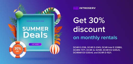 Dobrodošli na Ljetnu akciju otvaranja INTROSERV-a! Uzbuđeni smo što vam nudimo isključive ponude, neprekidne promocije, i nevjerojatne popuste na dedicirani servere. Iskoristite fantastičnu ponudu i uživajte u velikodušnom popustu od 30% na mjesečne iznajmljive sljedećih konfiguracija servera: DC4R E-2136, DC4R D-2141I, DC4R Intel E 2288G, DC4R4 7371, DC4R 2x 4214R, DC4R E3-1245v5, DC4RAR E3-1230v6, i DC4R D-1521.