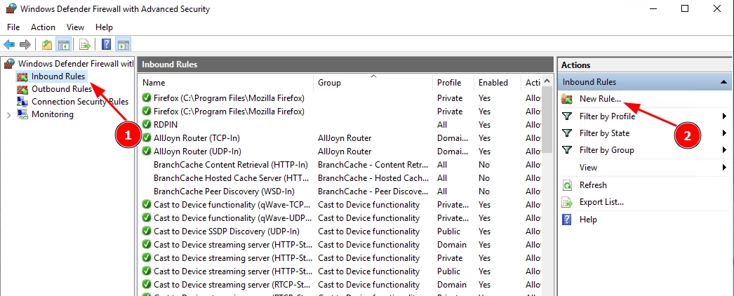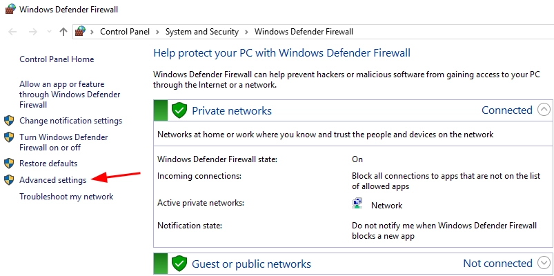 Zatim idite na "Control Panel" - "Windows Firewall" - "Advanced Options"