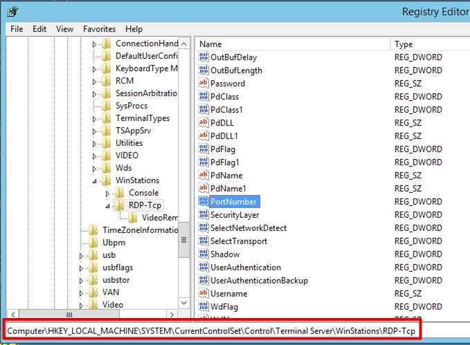 HKEY_LOCAL_MACHINE \ System \ CurrentControlSet \ Control \ TerminalServer \ WinStations \ RDP-Tcp