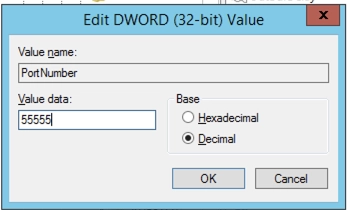 Odaberite PortNumber parametar, odaberite Decimal i promijenite vrijednost za broj porta koji planirate koristiti, na primjer, 55555 (po zadanoj vrijednosti 3389)