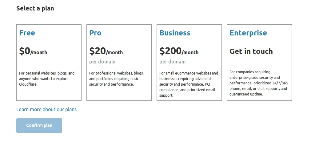 - Dalje, trebate odabrati plan tarife za web stranicu