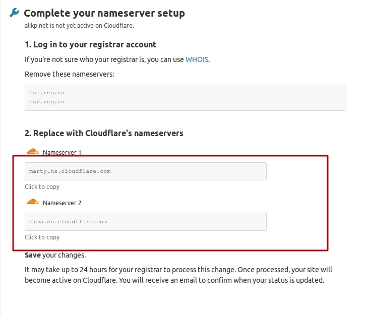 domena usmjerena na DNS server CloudFlare-a - ova web stranica će biti označena kao aktivna.