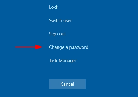 1) Pritisnite kombinaciju tipki Ctrl+Alt+Del na tipkovnici. U izborniku koji se pojavljuje odaberite: "Change password".