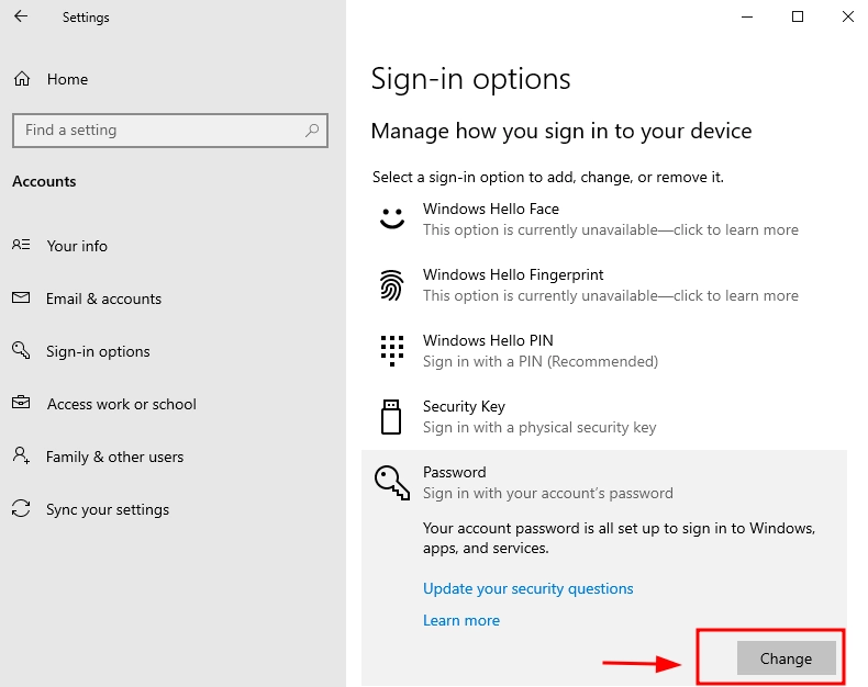 1) Idite na Start->Settings->Accounts i odaberite "Sign-in Options".