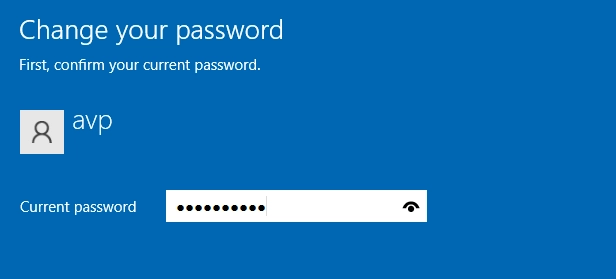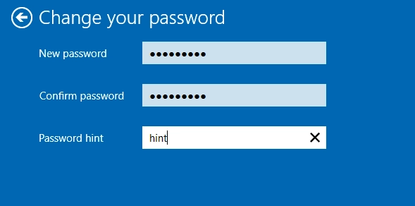 4) Unesite novu lozinku i savjet, ili kao alternativu, unesite staru lozinku plus dva puta novu i gumb Next.