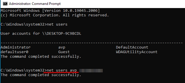 Gotovo. Odmah nakon toga, nova lozinka će biti postavljena za odabranog korisnika. Moguće je obrisati lozinku računa unosom dva obrnuta navodnika (bez razmaka u sredini) umjesto lozinke. Nakon ovih promjena račun će se moći pristupiti bez unosa lozinke u budućnosti.