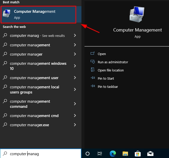 1) Pokrenite "Computer Management" unosom sljedećih naredbi: