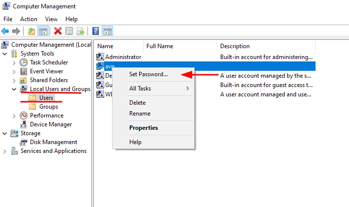 Desnom tipkom miša kliknite na željenog korisnika i odaberite "Set Password".