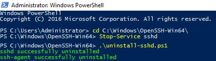 Za ispravno uklanjanje Win32 OpenSSH usluge iz sustava: