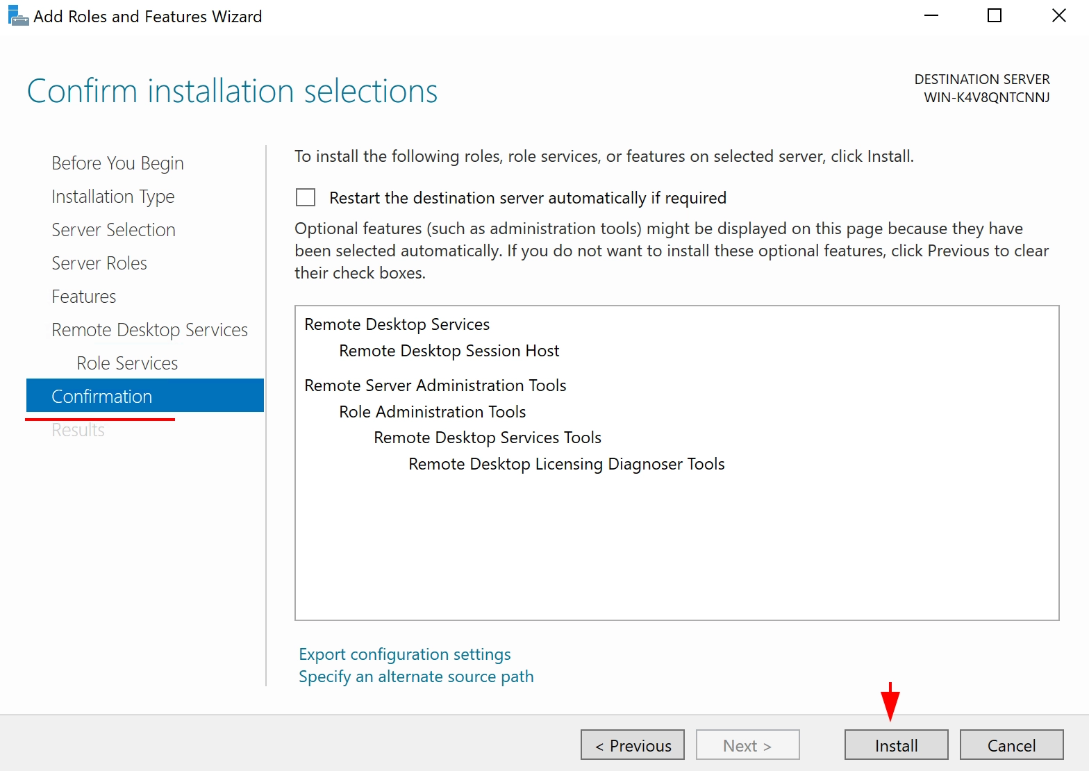 6. Idite u odjeljak Confirmation i kliknite gumb Install