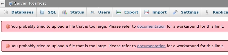 Ove radnje su potrebne ako trebate uvesti veliku bazu podataka iz SQL dump-a korištenjem PHPMyAdmin-a. S ovakvim uvozom, može se pojaviti sljedeća greška: