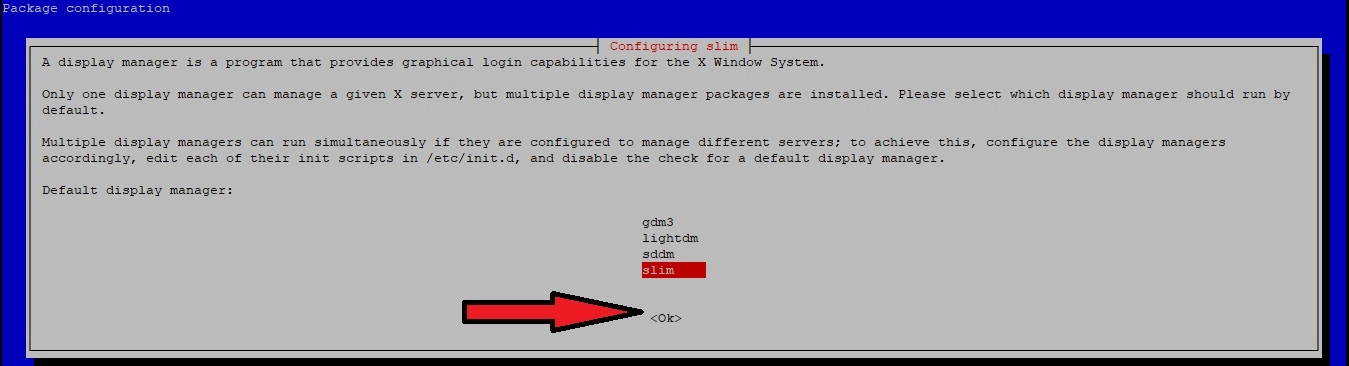 (u našem slučaju je to slim, Xfce GUI je kompatibilan samo sa SLiM Display Manager-om).