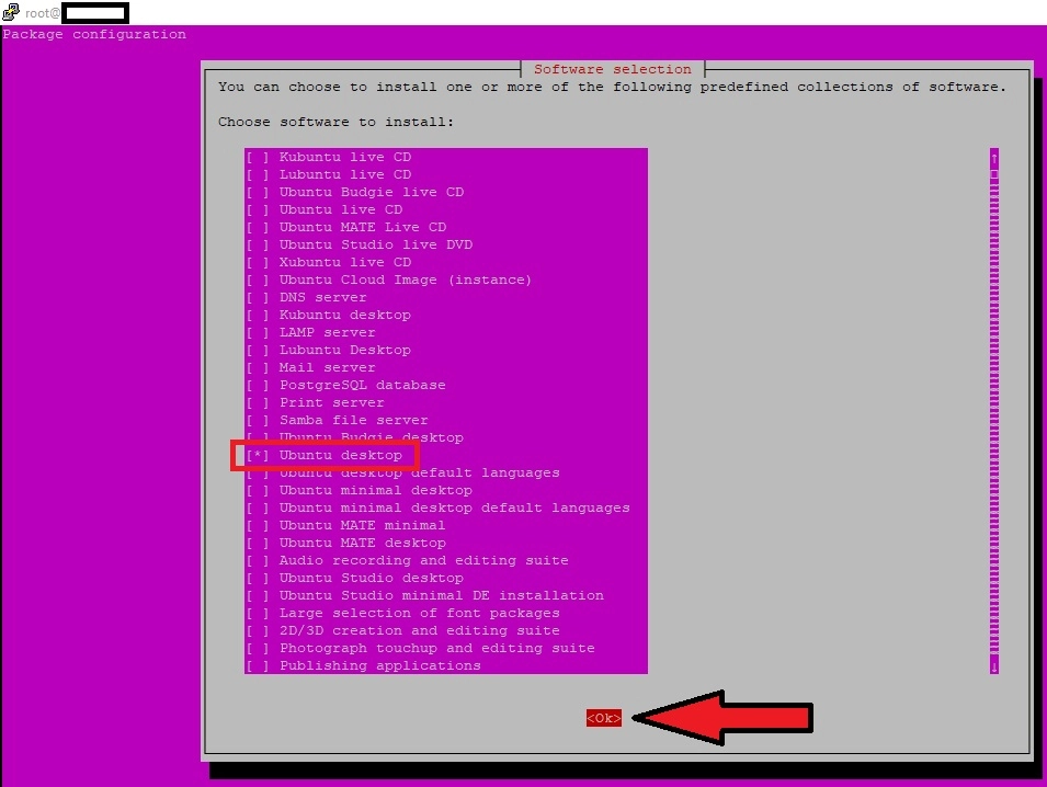 S sljedećom naredbom, možete instalirati iz tasksel izbornika: