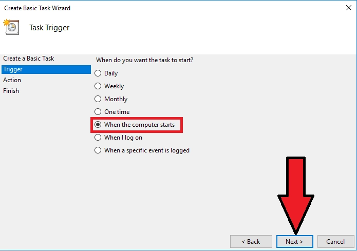 1) Dodajte datoteku za pokretanje u Windows scheduler autorun: Start→taskschd.msc
