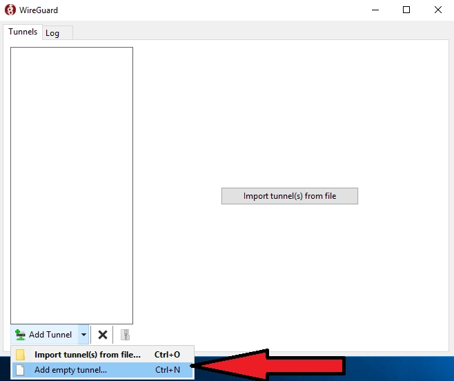 2) Pokrenite C:\Program Files\WireGuard\wireguard.exe i dodajte prazan tunel (trebat ćemo konfigurirati serversku stranu):