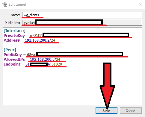 4) Sada trebamo dodati našeg klijenta u WireGuard serverski dio, da biste to učinili vratite se na korak 2 i dodajte njegovu konfiguraciju: