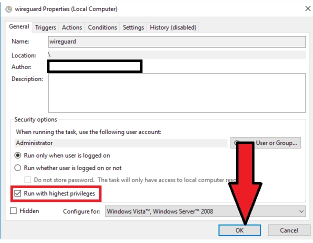 U prozoru koji se otvara, označite "Run with the highest rights"→OK