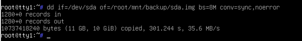 dd if=/dev/sda of=/root/mnt/backup/sda.ing bs=8M conv=sync,noerror