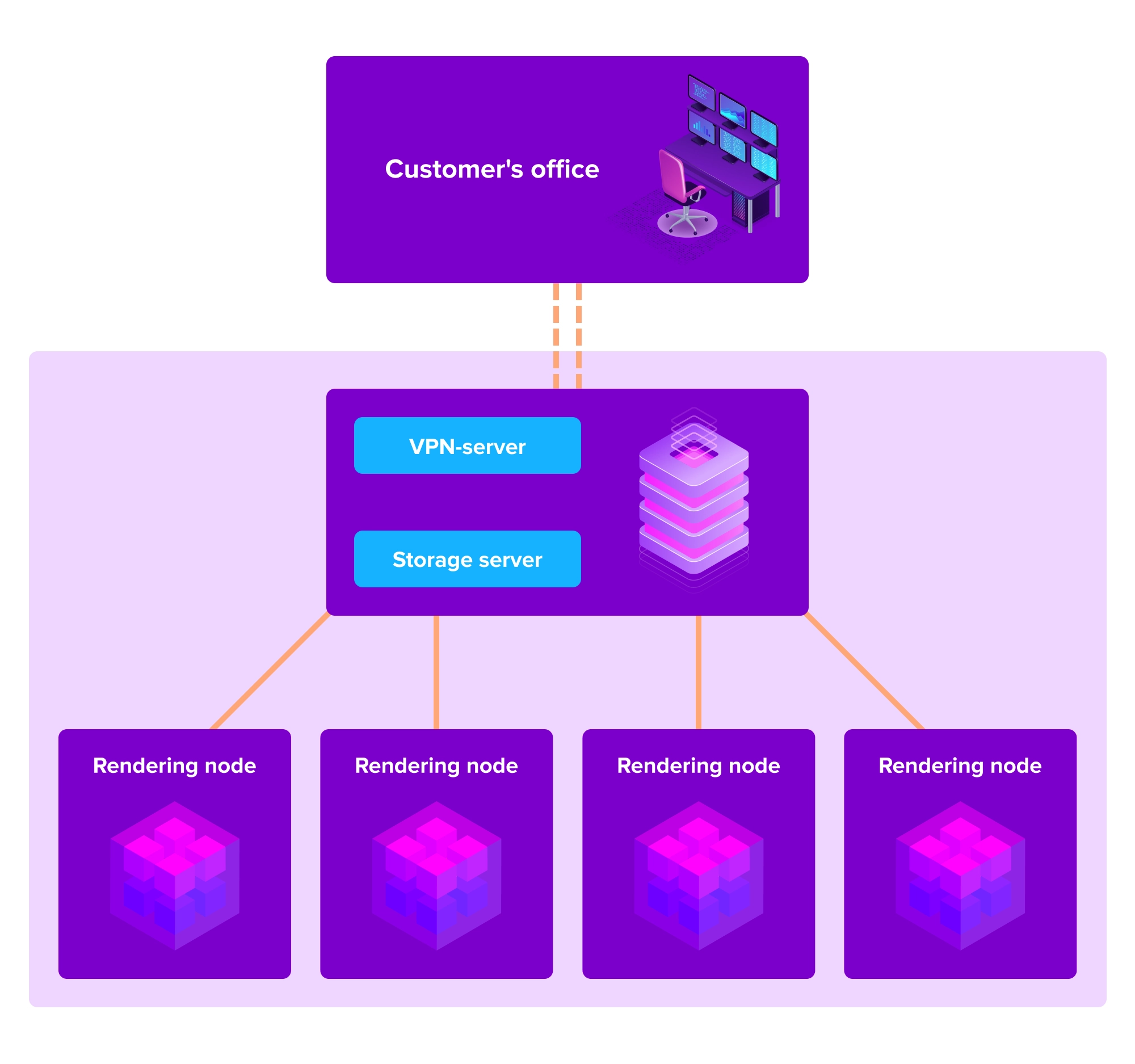 Za reševanje dodeljenih nalog so tehnični strokovnjaki podjetja INTROSERV zasnovali in namestili napredno rešitev - strežniško gručo za omrežno upodabljanje (porazdeljeno upodabljanje).