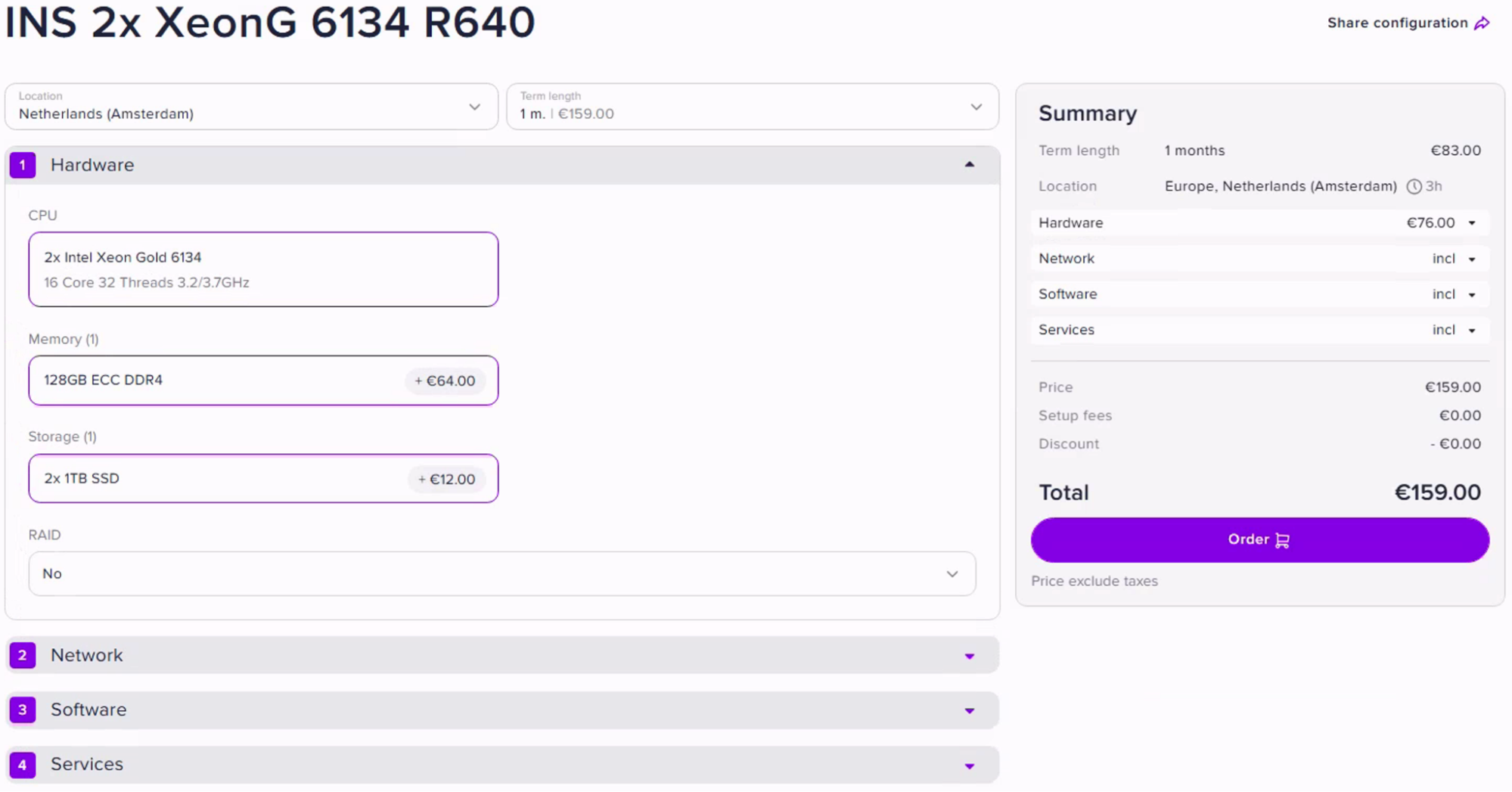 - Izberite med naročanjem strežnika (hitrost pasovne širine se izbere v konfiguratorju)