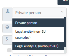 - Ne → Izberite pravno osebo EU (brez DDV)