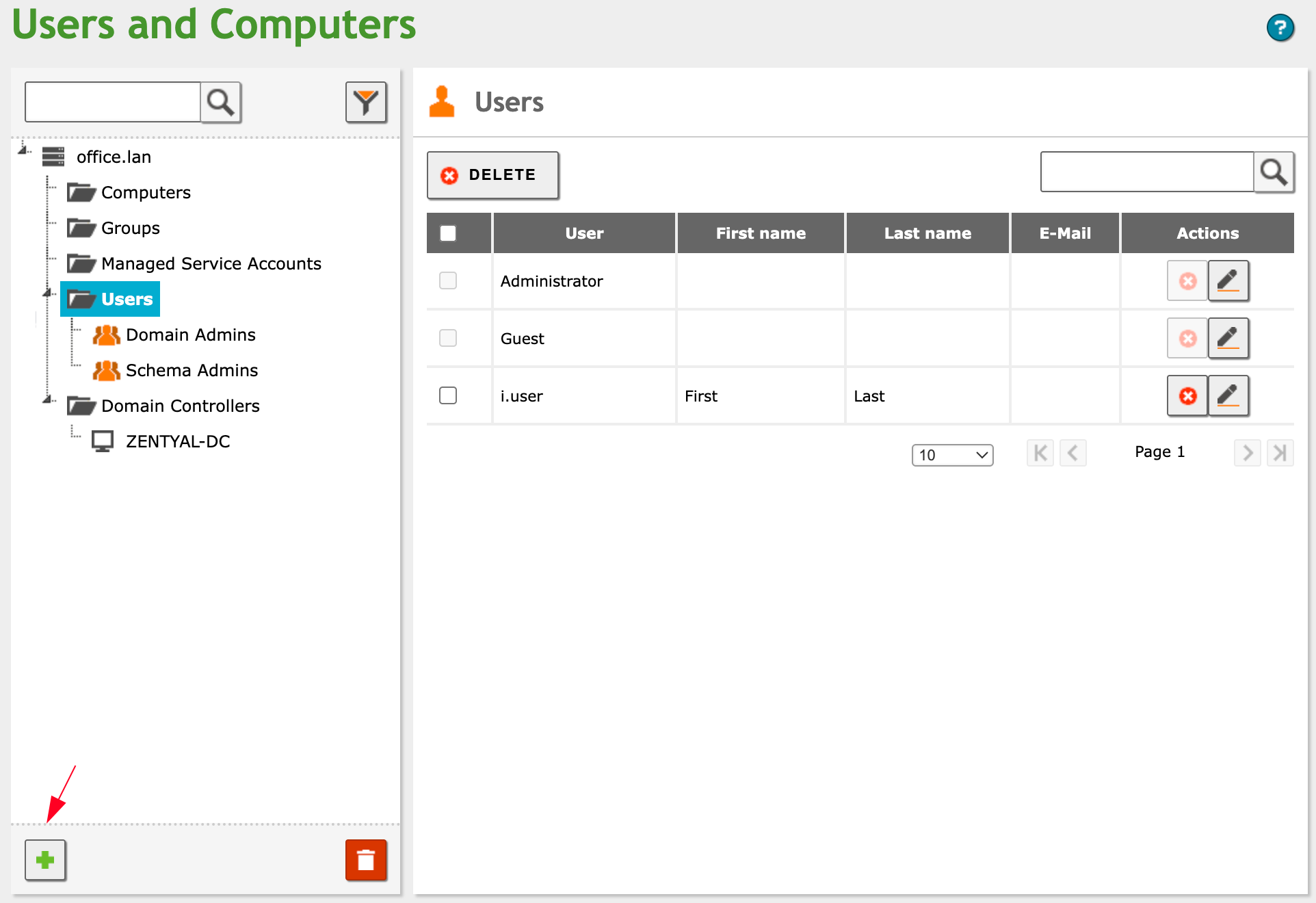 Zentyal varsayılan olarak Domain Admins ve Schema Admins gruplarına ait bir Administrator kullanıcısı oluşturur.