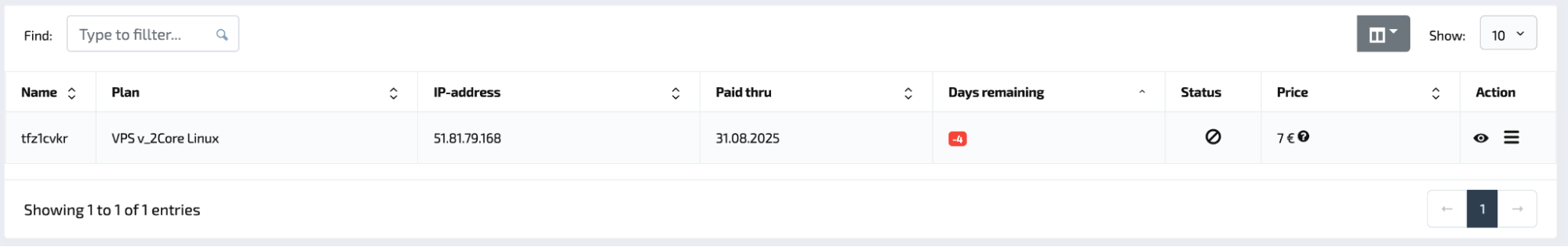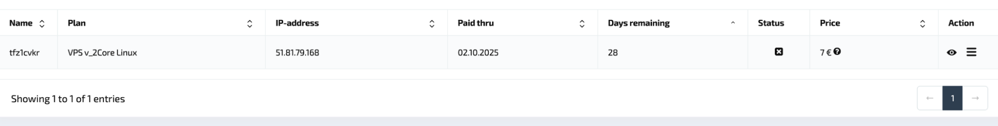 - Продовжити замовлення (Renew order): продовжити сервіс (вибрати період продовження).